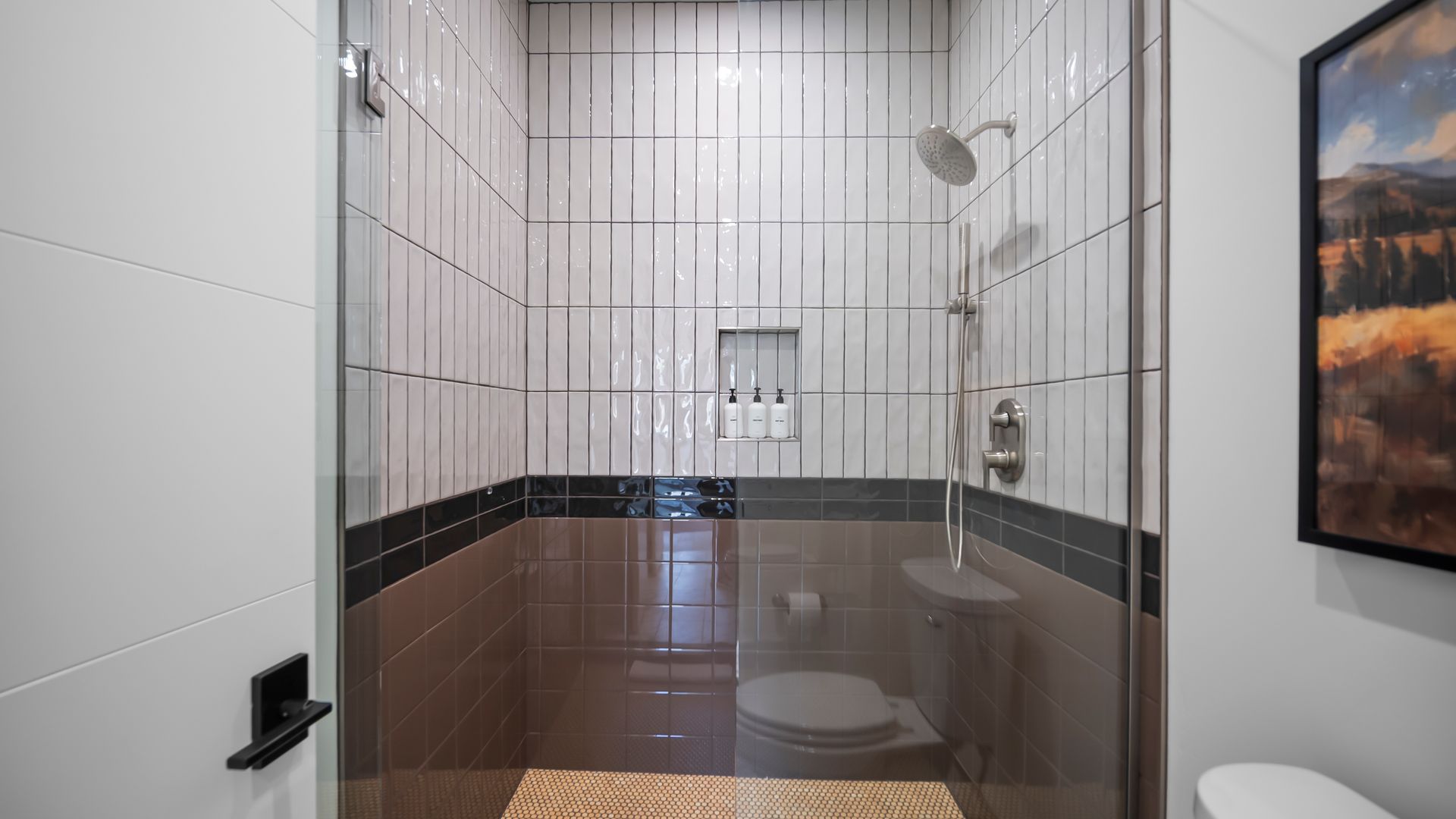 After a day of exploring, unwind in the cozy living room. The sofa bed offers extra sleeping space if needed. Refresh in the walk-in tile showers and take advantage of the in-unit washer and dryer for added convenience.