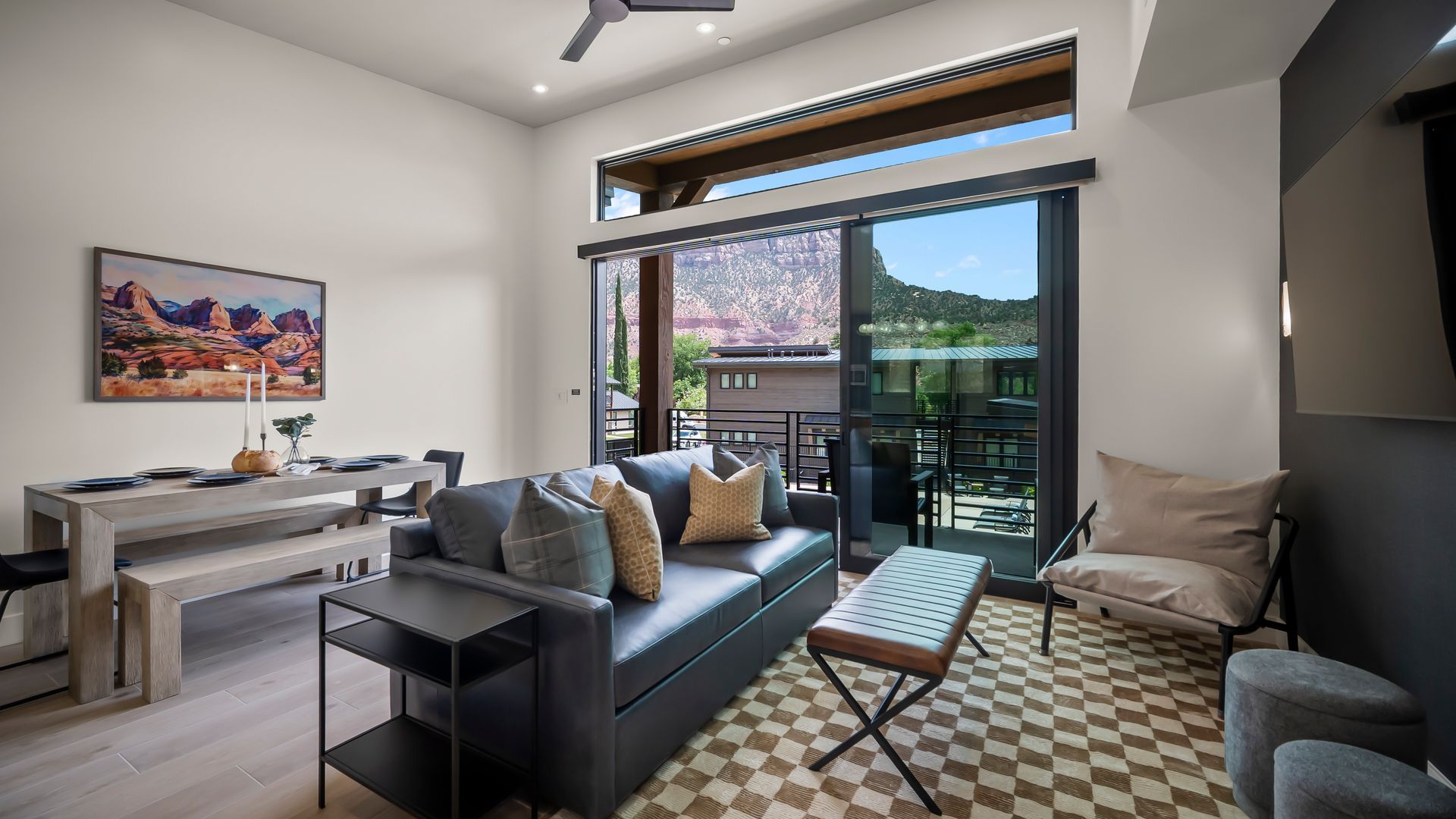 Inside, you’ll find a full-sized kitchen equipped with everything you need to prepare delicious meals. Share those meals around the dining table and then unwind in the spacious living room where a plush sofa bed provides extra sleeping space.